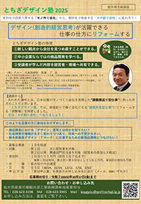 県では、県内中小企業の商品開発におけるデザイン導入に関する課題を解決しつつ、デザイン性に優れた商品開発に向けた実践的な能力の習得を図るため、「とちぎデザイン塾 2025」を実施することといたしました。是非ご参加下さい。