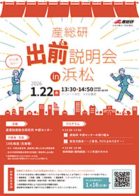浜松・遠州地域の事業者の皆様をはじめ、周辺地域の事業者様の研究課題に対してお力になれるよう、取り組んでまいりますので、来場お待ち申し上げております。