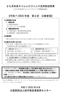 (公財)栃木県産業振興センターでは、脱炭素の実現に向けて新技術・新製品を開発する県内の中堅企業者、中小企業者等及び大学等を支援する「脱炭素化技術育成支援事業」について、下記のとおり事業計画を公募します。