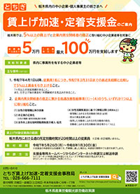 栃木県では、物価高を上回る所得増加の実現に向けて、県内中小企業者等における高水準の賃上げ率の維持・定着を支援するため、以下のとおり「とちぎ賃上げ加速・定着支援金」を支給します。